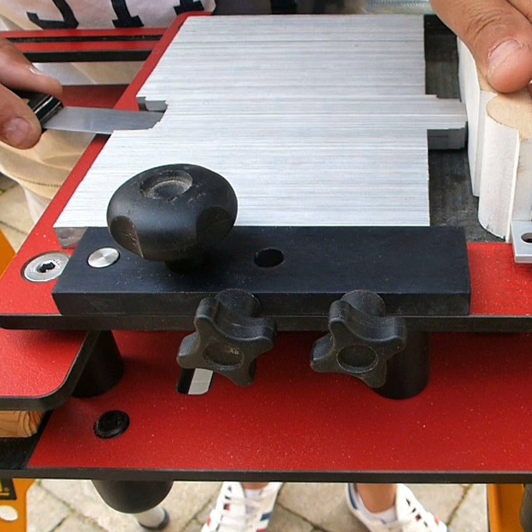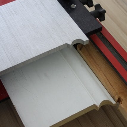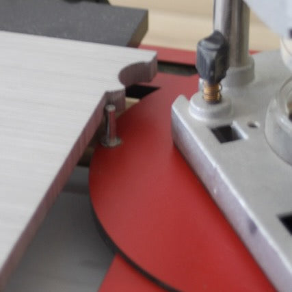 Cuts precise copes in just 15 seconds using a medium duty router fitted with a 1-3/16" (30mm) guide bushing